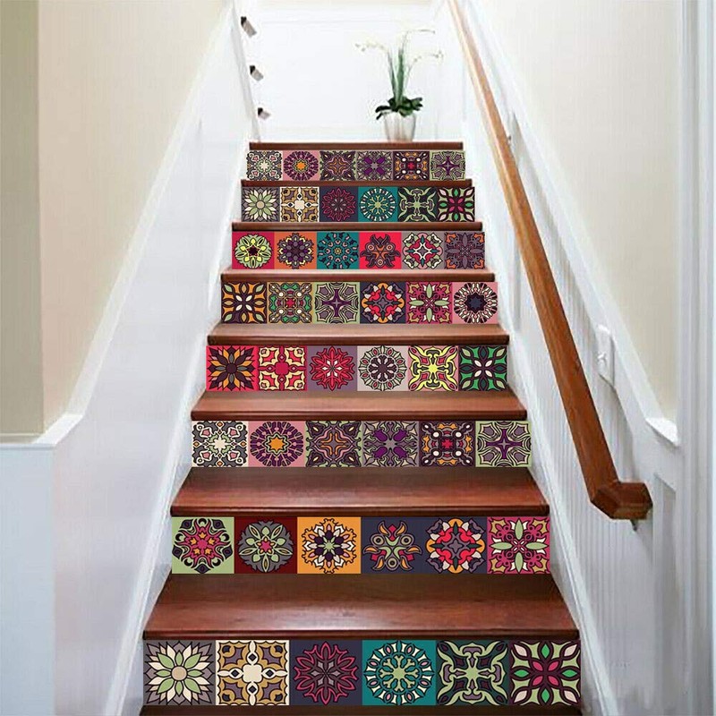 FLFK Traditional Mexican Talavera Tile Stair Sticker 3D Waterproof Wallpaper Home Decorations 100CMx18CMx6pieces