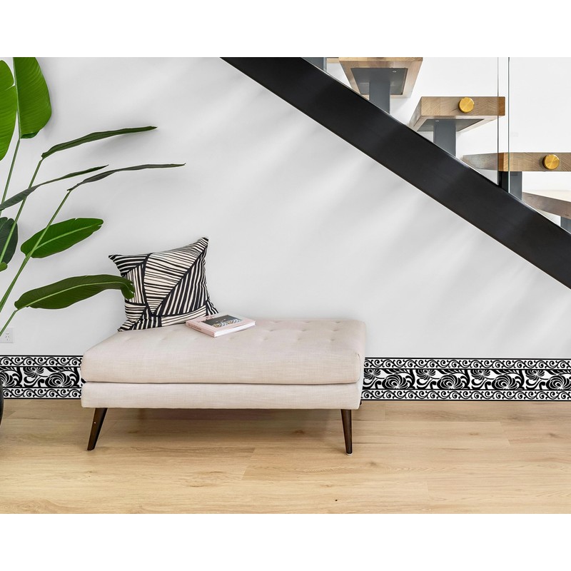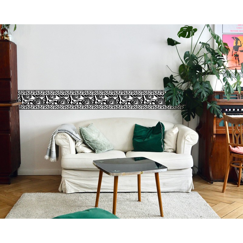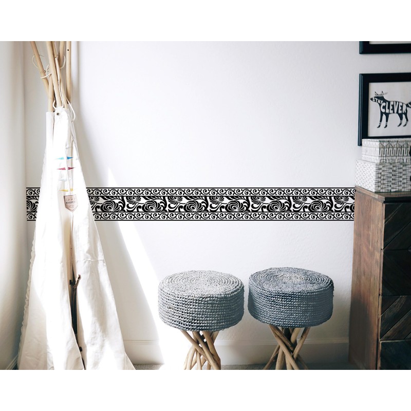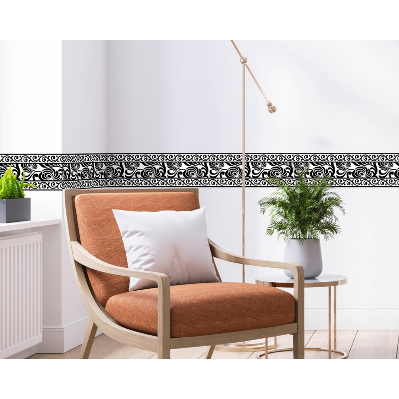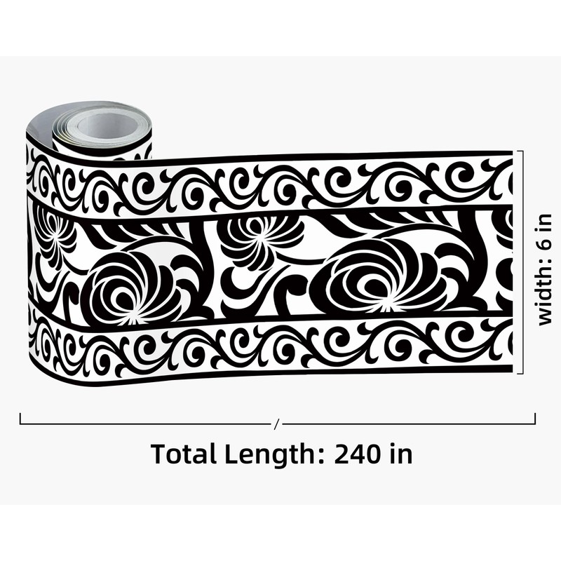 - Decorative Accent: This peel-and-stick wallpaper border features an intricate black and white floral design, adding an elegant touch to any room.