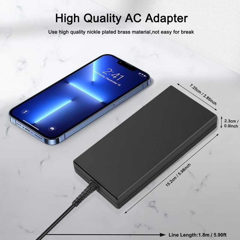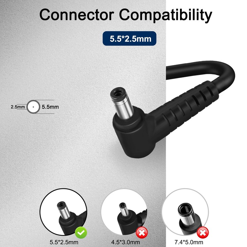 - Input: 100-240V,50-60Hz~2.5a; Output: 20V 9A 180W. Connector size: 5.5*2.5mm.