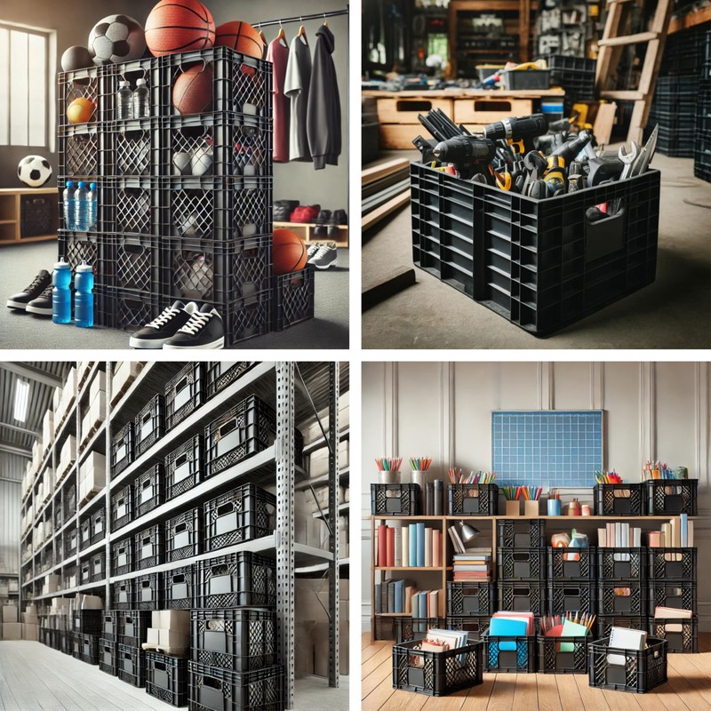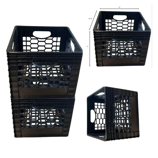 Looking for a reliable and versatile storage solution? Look no further! Our heavy-duty 11"x11"x13" black milk crates are designed for durability and functionality, making them the perfect choice for various storage and organization needs. Whether you're organizing your home, setting up a campsite, managing tools on a worksite, or creating DIY furniture, these milk crates are up for the task. Proudly made in the USA, they provide robust support, stackable convenience, and long-lasting performance. Key Features: Multi-Purpose Use: Ideal for home organization, retail displays, educational settings, sports facilities, outdoor adventures, camping, and even tradesman worksites. Our milk crates offer a versatile solution for every need. Heavy-Duty Design: Crafted from high-density polyethylene (HDPE), these crates can withstand the toughest environments—whether it's holding your tools, organizing your pantry, or acting as portable storage at the gym or campsite. Stackable & Space-Saving: With uniform 11"x11"x13" dimensions, these crates are perfect for efficient storage. Their stackable design saves space, making them ideal for homes, offices, garages, and storage facilities. Eco-Friendly & Reusable: Made from 100% recyclable materials, these crates are designed to last and minimize waste. Choose a sustainable storage option without compromising durability. DIY Projects & Furniture: With a bit of creativity, these milk crates can be repurposed into stylish shelving, stools, tables, or even planters for your garden. They're perfect for DIY enthusiasts looking for functional design. Made in the USA: Supporting local manufacturing, these crates are proudly made in the USA, ensuring the highest quality and helping to reduce your carbon footprint. Use Cases: 1. Home & Office Organization: Use these crates to organize books, shoes, toys, pantry items, or office supplies. Their sturdy build and sleek black design allow them to blend into any room. 2. Camping & Outdoor Adventures: Keep your gear secure and organized on your next camping trip. These crates are perfect for holding tents, cooking equipment, and other essentials. 3. Tradesman Worksites: Store and transport tools like hammers, drills, and nails on-site. The crates can handle the rough environment of a construction or workshop space. 4. Retail Displays: These crates make practical and stylish retail displays for products like fruits, accessories, and more. Their stackable nature allows for easy customization in a store setting. 5. Educational & Institutional Use: Schools, libraries, and daycare centers can use these crates to organize books, art supplies, and sports equipment, making them a must-have for educators. These crates are an essential tool for anyone looking for a robust, multi-functional, and eco-friendly storage solution. Upgrade your space and simplify your organization with our heavy-duty milk crates today!