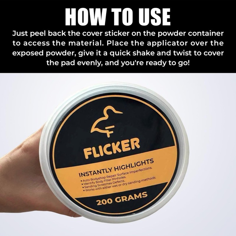Flickers Premium Black Dry Guide Coat Kit - 200 Gram - Instant Powder for Highlighting Auto Body Repair Imperfections, Pinholes, and Sanding Scratches