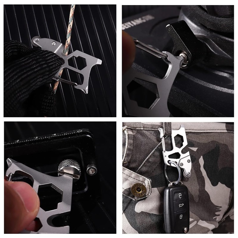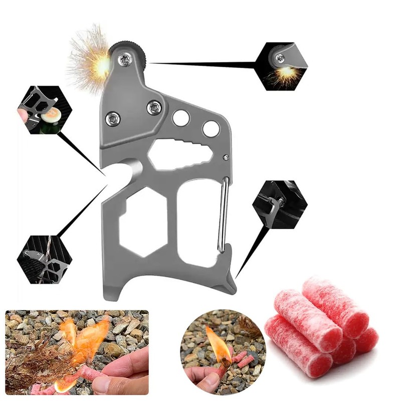 - 🆘 Essential Emergency Carabiner for Outdoor Exploration, It has multitools that can be used to fix most basic outdoor things. Best of all, it has a Built-in flint that can generate sparks to start a campfire.