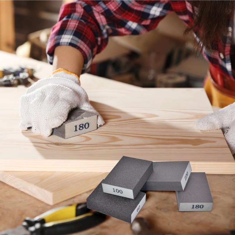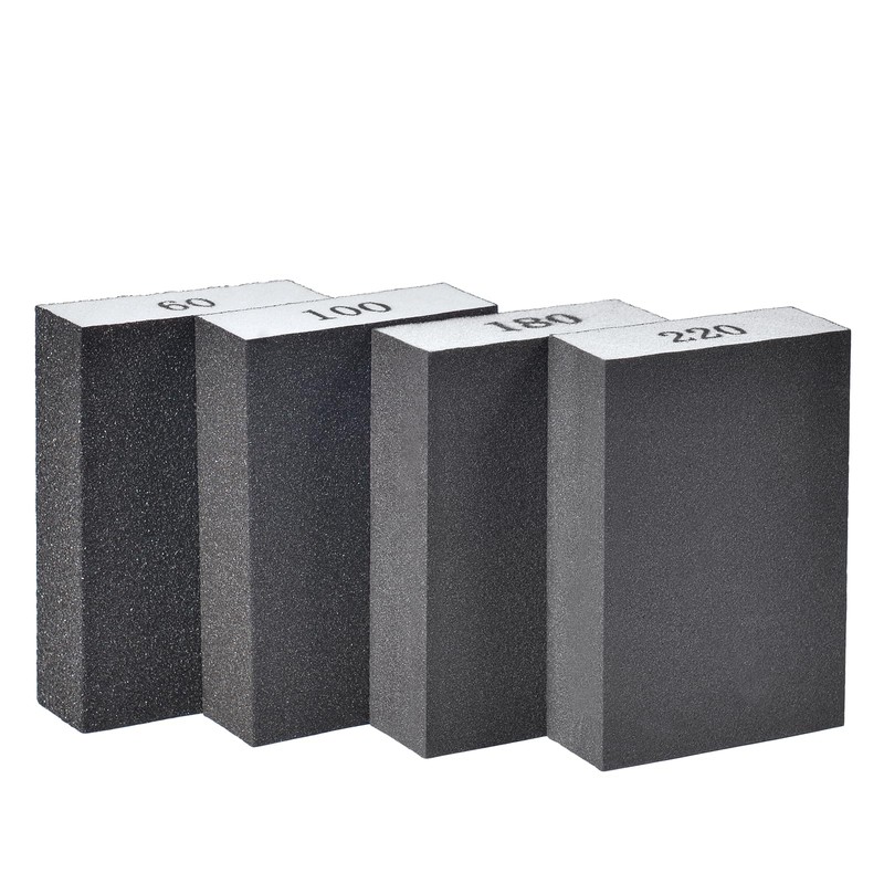 - 📦【4 PIECES SET】Package includes 4 pieces sanding blocks. Each Each sanding block has a specific grit, 60#, 100#, 180#, 220#. The 60# sanding sponge is equivalent to the roughness of sandpaper 120-180P, 100#=240-320P, 180#=600-800P, 220#=1000P. Its polishing efficiency is much higher than sandpaper. (The smaller number is the coarser grit.)