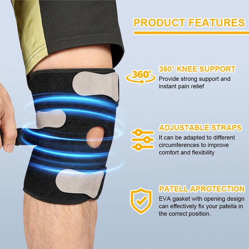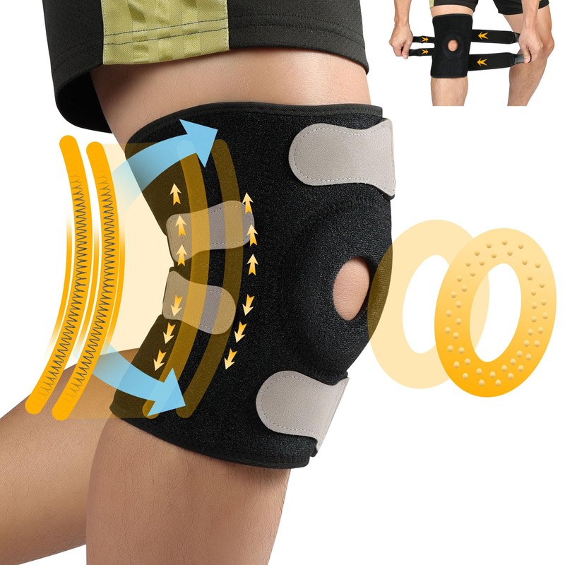 • 【Open Patellar Design】The open patellar strap design acts directly on the kneecap, disperses patellar pressure through physical pressure, reduces joint friction, and relieves pain caused by patellar softening, synovitis, etc.The patella gel pad and spring strap provide enhanced support and help with knee joint stability, effectively protecting and supporting your knee.