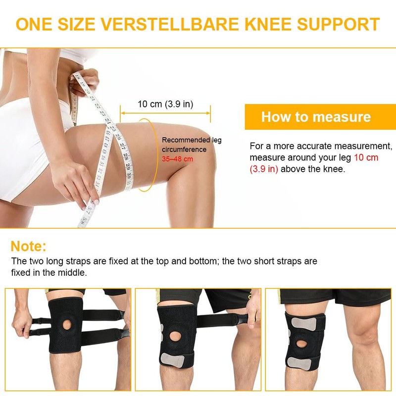 -Please read the measurement instructions before placing an order, please refer to the size chart in the picture, this knee support is suitable for people with a thigh circumference of 35 to 48 cm.
