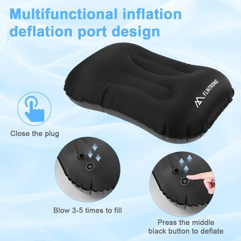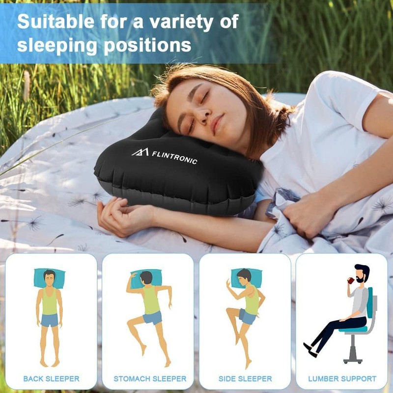 - đăWide ApplicationăThe Flintronic inflatable camping pillow is ideal for leisure activities such as travel, holidays, summer holidays, camping etc. Beach cushion it can also be used as a hip cushion for cars or chairs to protect your lumbar spine, and it is also a perfect gift for family and friends. Make sure you pack it with your sleeping bag, hammock, tent and backpack.
