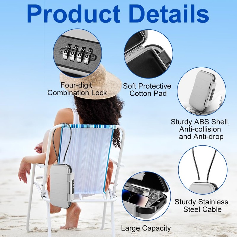 Equipped with a detachable sturdy steel cable, you can hang it anywhere without worrying about the items being unattended. It is suitable for swimming pools, homes, hotel rooms, offices, dormitories, camping or beach trips.