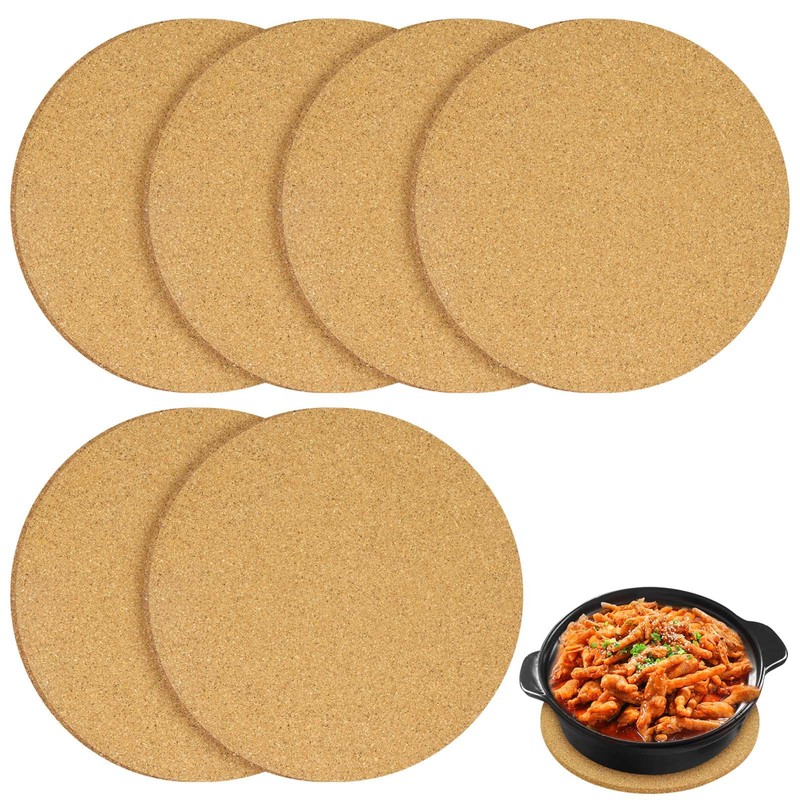 Flintronic Set of 6 Pot Coasters, 18 cm Diameter, Cork Coasters, Round Cork Coasters, Heat Resistant Coasters, for Pots, Bowls, Kitchen Utensils