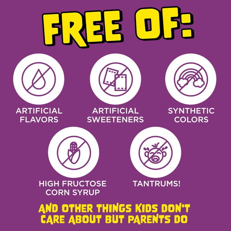 - Good stuff in, other stuff out: Free of synthetic colors, artificial flavors, artificial sweeteners, egg allergen, fish/crustacean shellfish allergens, dairy (milk) allergens, and more—things kids don’t care about but parents do.