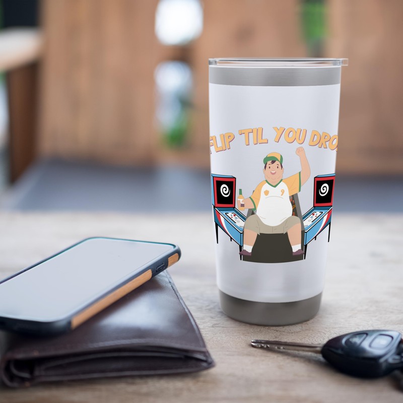 Flip 'Til You Drop Flipper Arcade Game Funny Pinball Stainless Steel Insulated Tumbler
