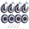 FLKQC 8 Pack 5" Shopping Cart Replacement Wheels Kit, Double Ball Bearing TPU Silent Wheels for Supermarket Carts, Cart Wheels Set with Hardware- 5 Inch Stem Threaded Caster Wheels (Blue)