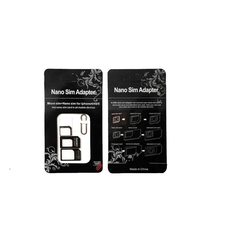 - The nano SIM adapter set contains a nano SIM to micro SIM adapter, a nano SIM to SIM adapter, a micro SIM to SIM adapter and a SIM slot opener