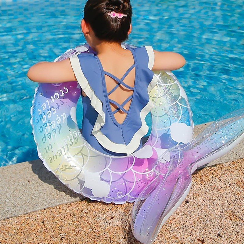 - Cute and Fashionable Mermaid Float: This beautiful and fashionable mermaid swim ring has a cute mermaid pattern, so you can enjoy the beautiful water scenery of the mermaids playing in the summer sun. It is full of cute pattern design. Unique, adults and kids love them very much