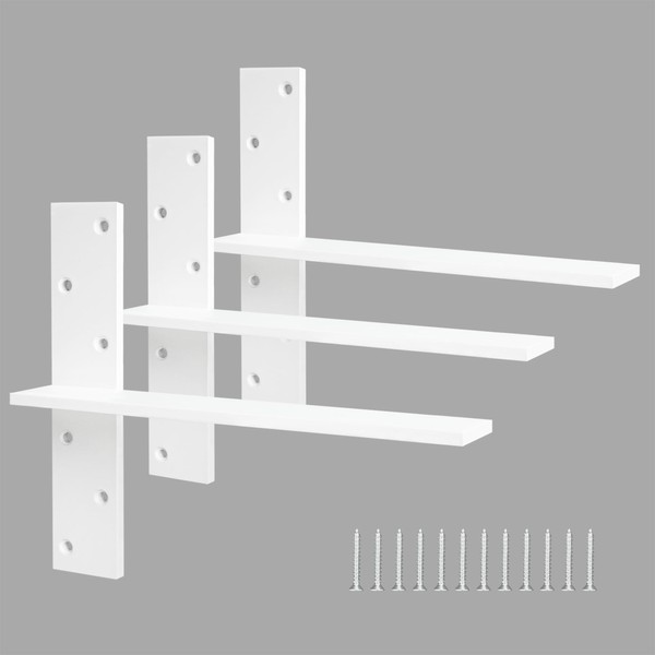 Floating Shelf Bracket 3/8" Thick Heavy Duty Shelf Brackets White 3 Pack Free Hanging Countertop Support Bracket 18" Lx2.5 W Floating Wall Brackets for Cabinets, Dishwasher, Bench Seats Vanities