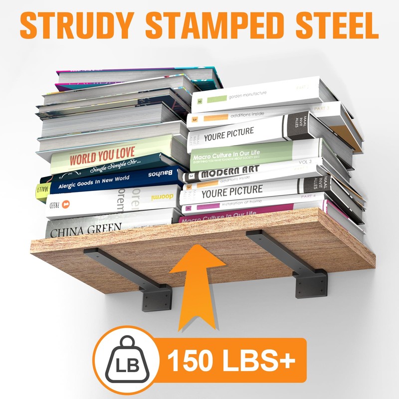 - Hidden Brackests: Our floating shelf brackets can be installed upwards or downwards.Can be installed by a single person.These shelf brackets have no lips and can be truly hidden. The base can be blocked by the plank, creating an amazing floating illusion.