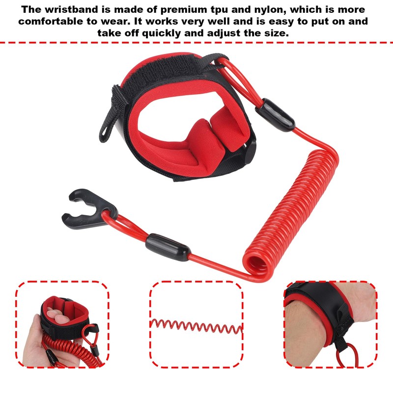 - Wide Applications: The boat kill switch lanyard wrist strap adopts a conspicuous red design, easy to find. It can be used as an independent emergency stop switch for jet skis and a universal outboard engine safety tether.