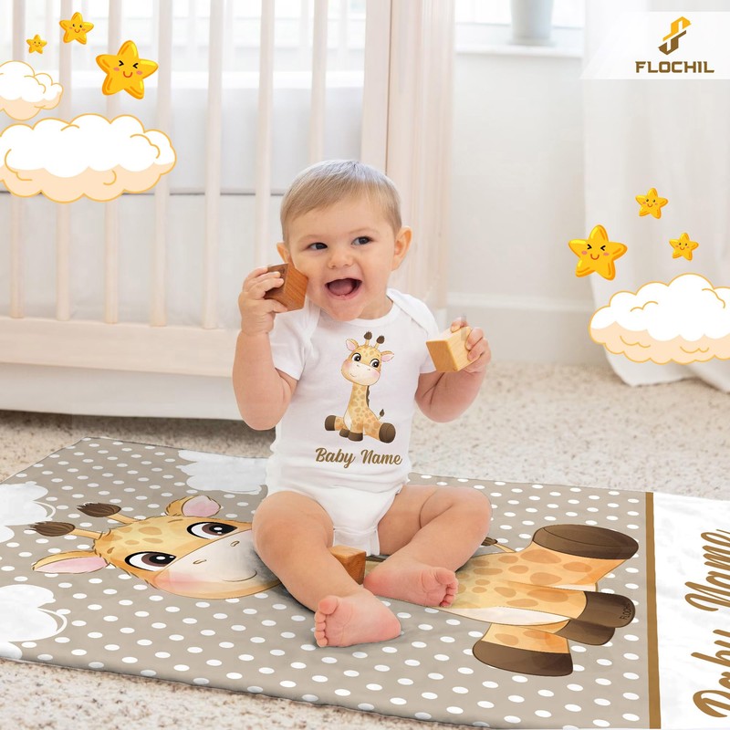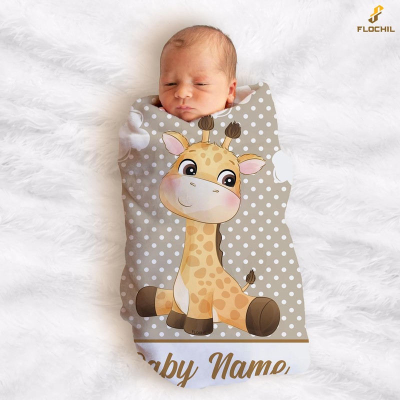 FLOCHIL Personalized Baby Blanket for Boys, Custom Baby Blanket with Name, Customized Baby Blanket Giraffe, Gift for Baby, Newborn, Baby Shower