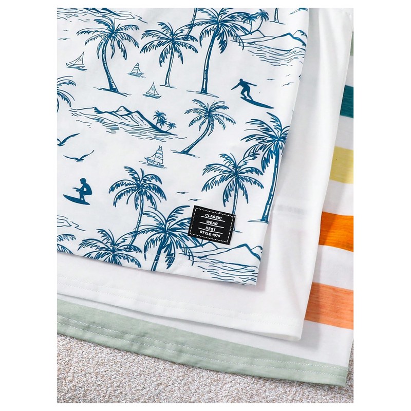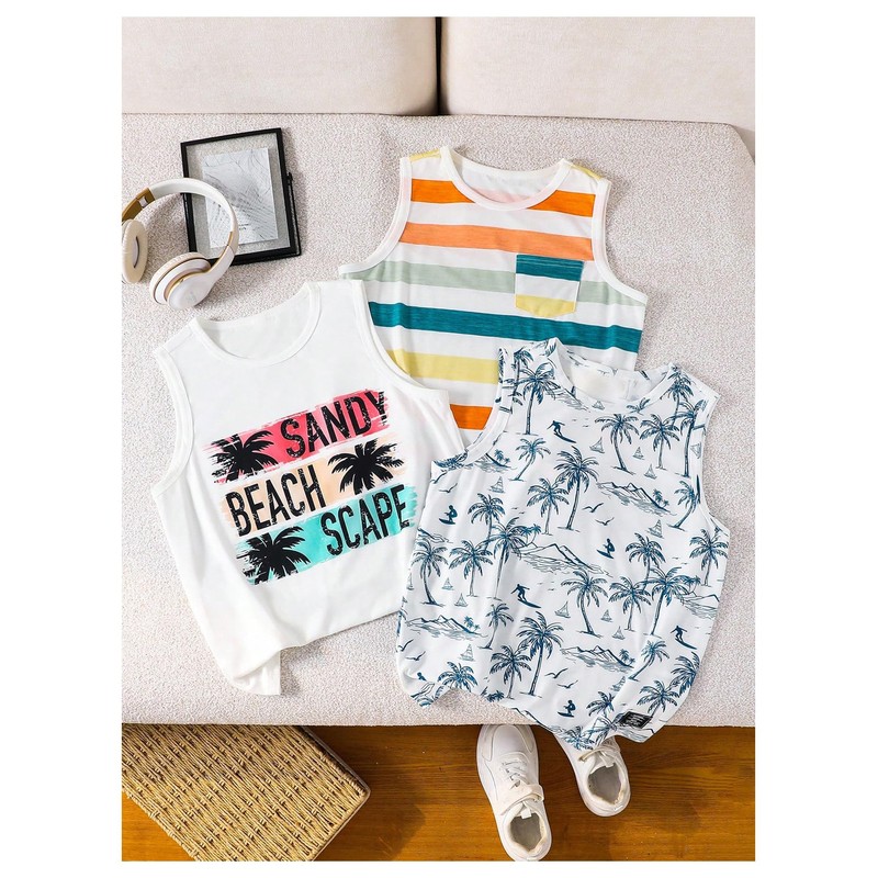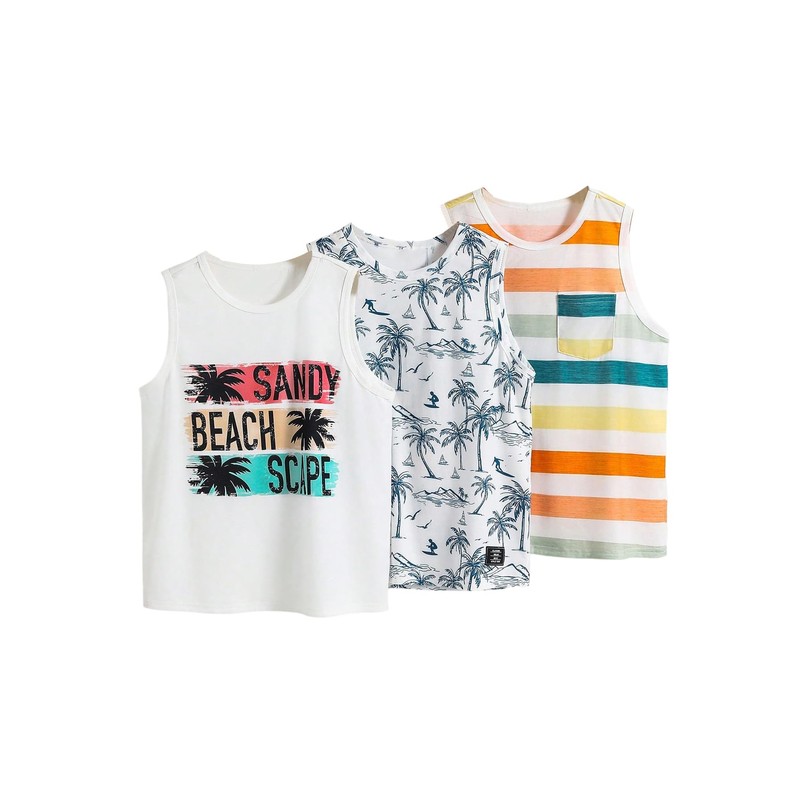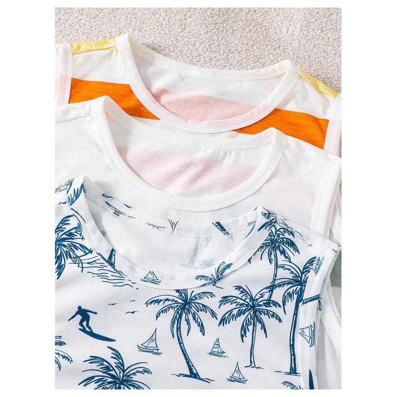 - Feature: Crew neck, sleeveless, tropical print, casual, loose fit, 3pcs, tank tops for boys