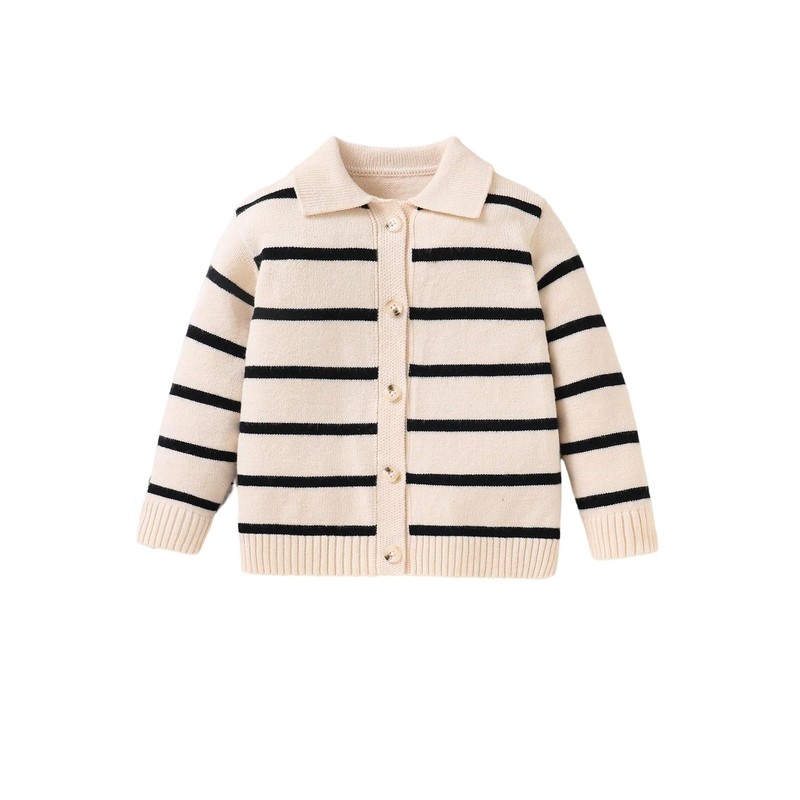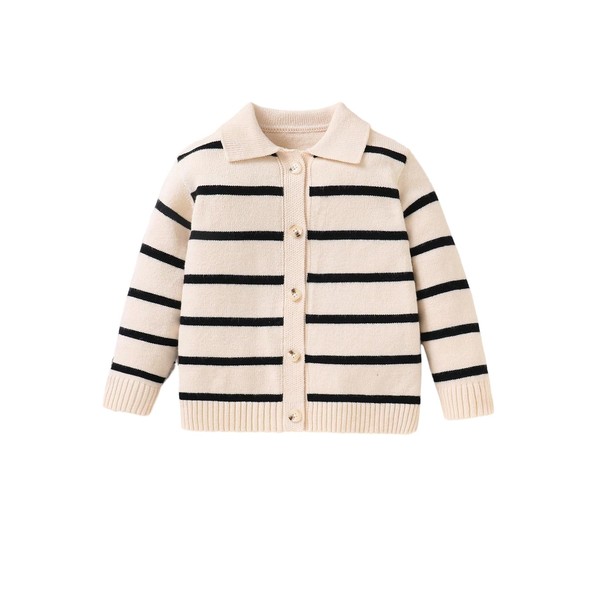 - Feature: Striped, button up, collar neck, long sleeves, knit, cardigan sweater for toddler boys
