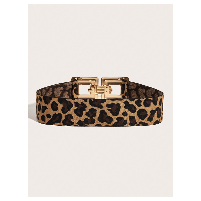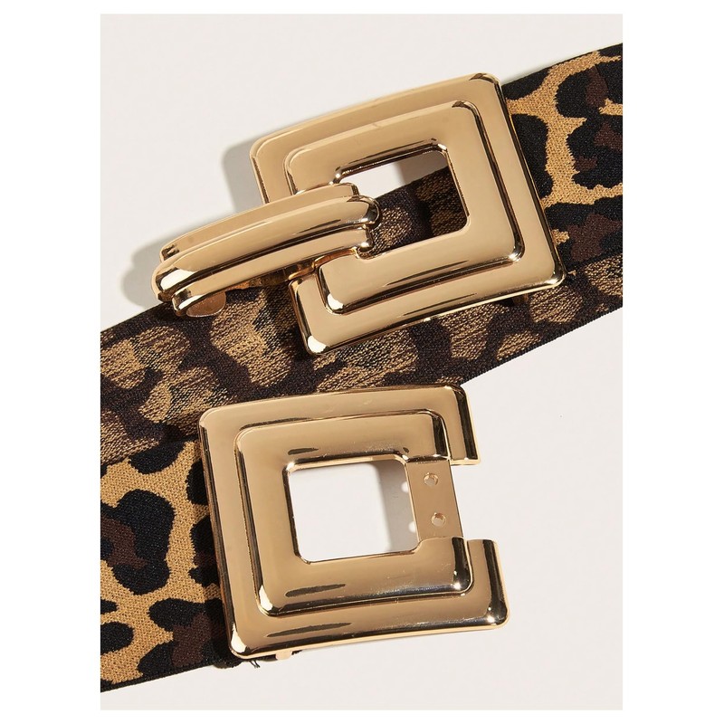- Features: Leopard print, wide belt, symmetrical buckle, square shape, elastic waistband