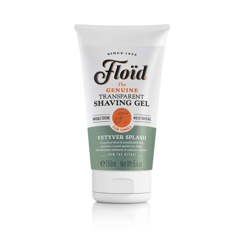 Floid Vetyver Splash Transparent Shaving Gel (150ml), Men's Shaving Gel with Glycerin to Protect and Hydrate Skin, Shave Gel for a Smooth Shave with an Invigorating Scent