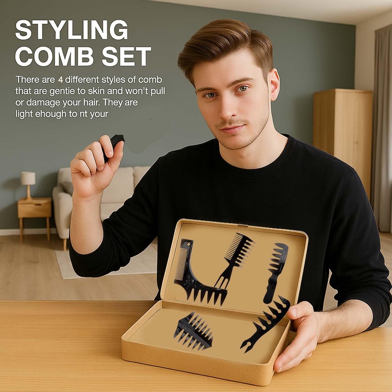 - Professionelle Anpassung für mehrere Szenen: Verwenden Sie einen breiten Zahnkamm für den täglichen Gebrauch zu Hause, um nasses Haar zu entwirren, einen schmalzahnigen Kamm im Salon, um eine ölige Frisur anzupassen, und einen Rippenkamm auf dem Filmset, um eine Textur zu schaffen, die der Kameralinse würdig ist. Auch nach dem Training können Sie Ihre Frisur schnell fixieren. Von zu Hause bis zu professionellen Umgebungen hilft es Männern, ihren einzigartigen Charme zu entfesseln und ist kompatibel mit der Anwendung von fettigen Retro-Kämmen.