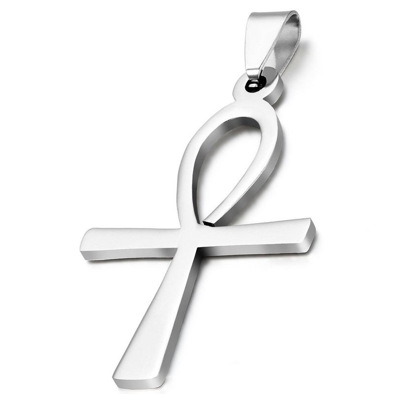 Flongo Herren-Kette Männer Anhänger Damen Halskette mit ägyptisch Ankh Kreuz Anhänger Silber Farbe aus Edelstahl