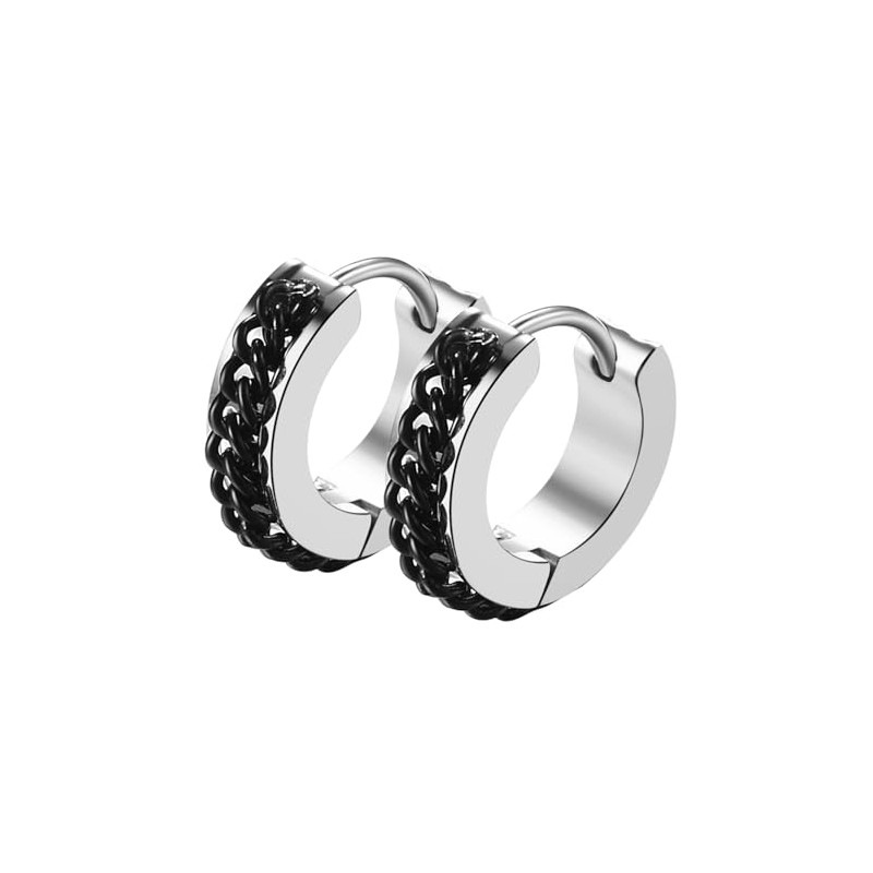 Flongo Vintage Hoop Earrings Curb Chain Earrings: Black Men's Wreath Hoop Viking Earrings Stainless Steel Earring Cartilage Jewellery Women's Hoop Stud Earrings Gift for Men Women