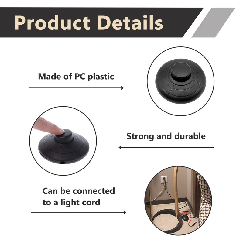 - The foot switch is built with a durable plastic housing and features a 70mm (2.76 inch) bottom diameter, making it stable and reliable for everyday use. The sleek black color and simple round design make it versatile and ideal for a variety of lighting applications.