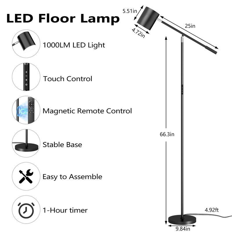 • Durable and Long-Lasting: The Jeagop Floor Lamp utilizes energy efficient LED beads and is ETL certified to ensure quality. The weighted metal base and sturdy tube will hold the floor lamp firmly in place so you can smoothly swing the arm to move the light