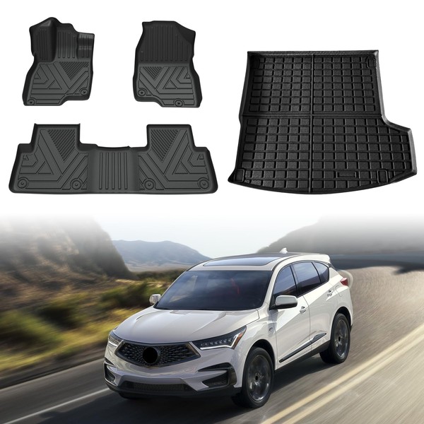Floor Mats & Cargo Liner Compatible with Acura RDX 2025 2019-2024 All-Weather Protection Waterproof Non-Slip RDX Accessories - Easy to Install -2 Row & Truck Mat - Black