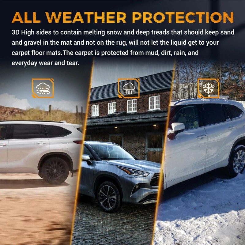 Floor Mats for 2020-2024 Toyota Highlander 3 Row Liner All Weather TPE Rubber
