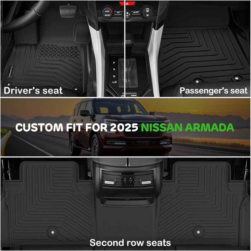 - FIT PERFECT:Yumemoo floor mats are fit for 2025 Nissan Armada/Infiniti QX80 8 Seats. Car floor liners provides full protection for front and rear by professional 3D laser scanner. Car floor mats include front row, rear row, and third row floor mats
