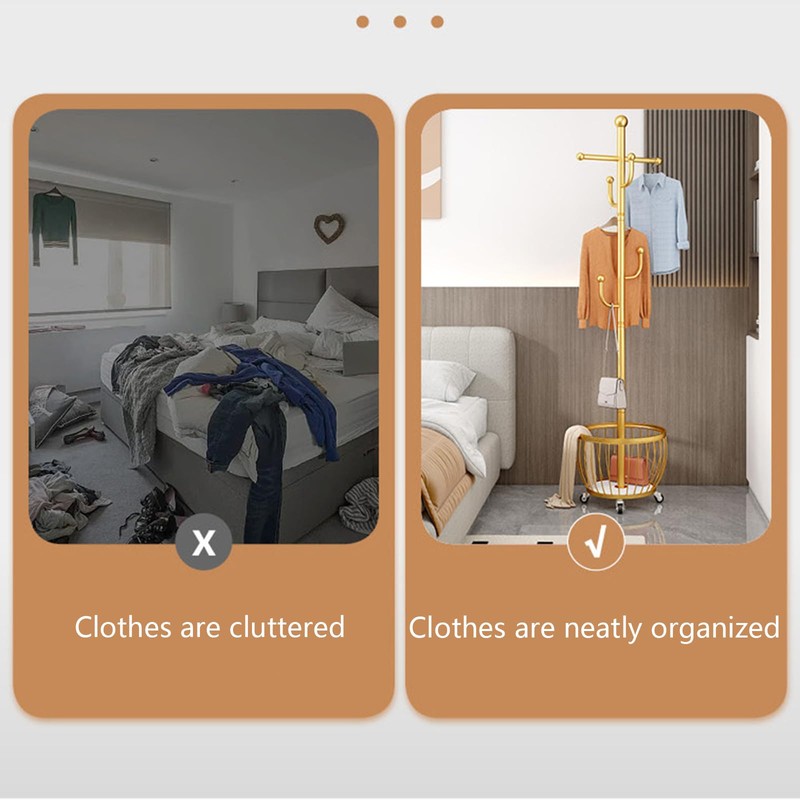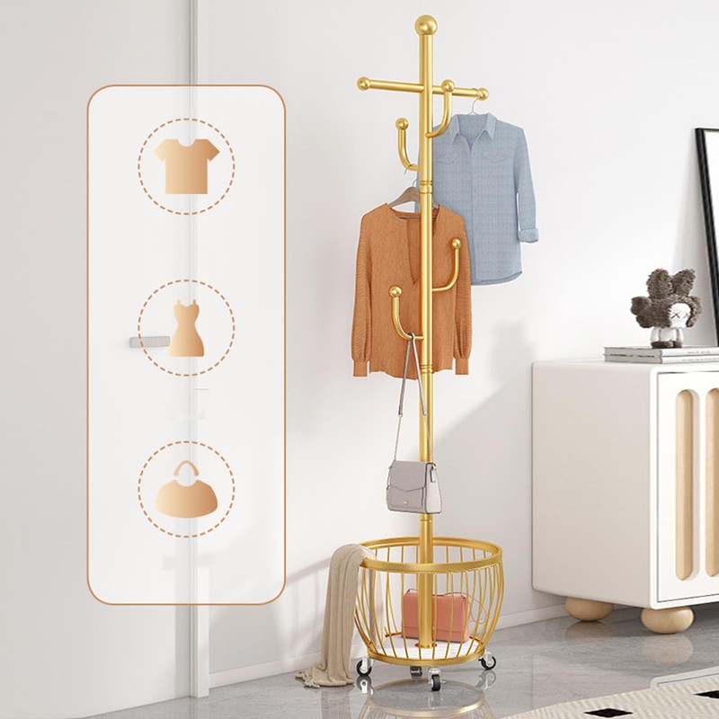 - [Easy to Move] The basket base with universal wheels makes it easy to move the coat rack anywhere.
