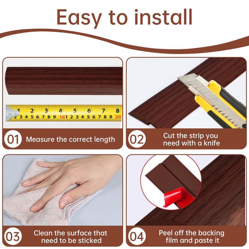 - 【Peel & Stick Installation】Just peel off the backing and press firmly - our transition strip's strong adhesive bonds instantly to floors without drilling or damage. No tools needed, no messy glue, just perfect protection for your flooring.