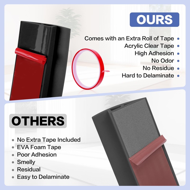 - Self-Adhesive Design: The door to tile transition strip reducer features an upgraded design with dual self-adhesive strips, providing a stronger, more secure hold. Installation is quick and simple—just peel and stick without the need for drilling, preserving your floors
