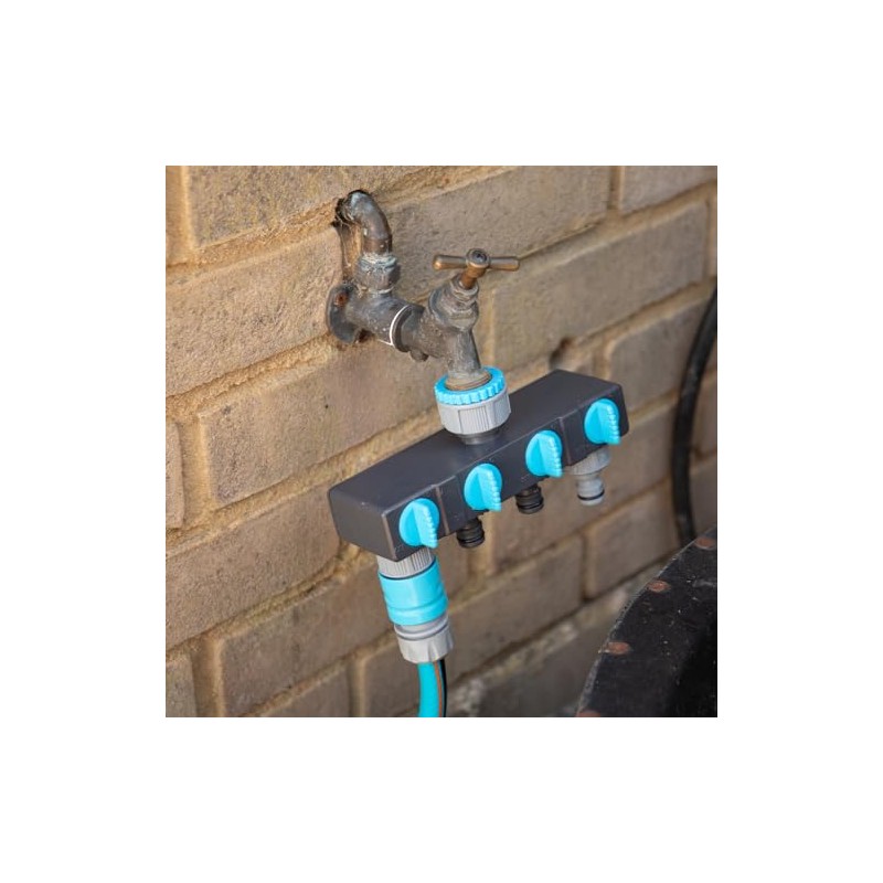 Flopro Four Way Tap Garden Hose Connector, Blue