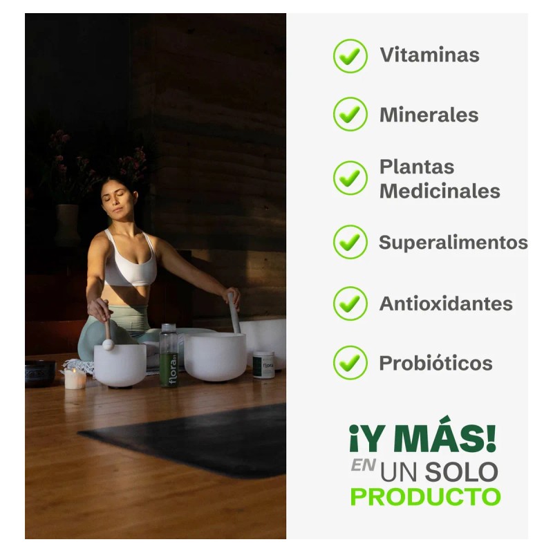 Para cubrir los requerimientos nutricionales básicos de personas activas. Una rica cucharada de Flora0 aporta beneficios integrales a los 3 niveles del bienestar humano; físico, emocional y mental. Flora0 contiene el espectro completo de vitaminas, minerales, antioxidantes, pre y probióticos, superfoods, adaptógenos, aminoácidos y enzimas digestivas que nuestro organismo necesita.