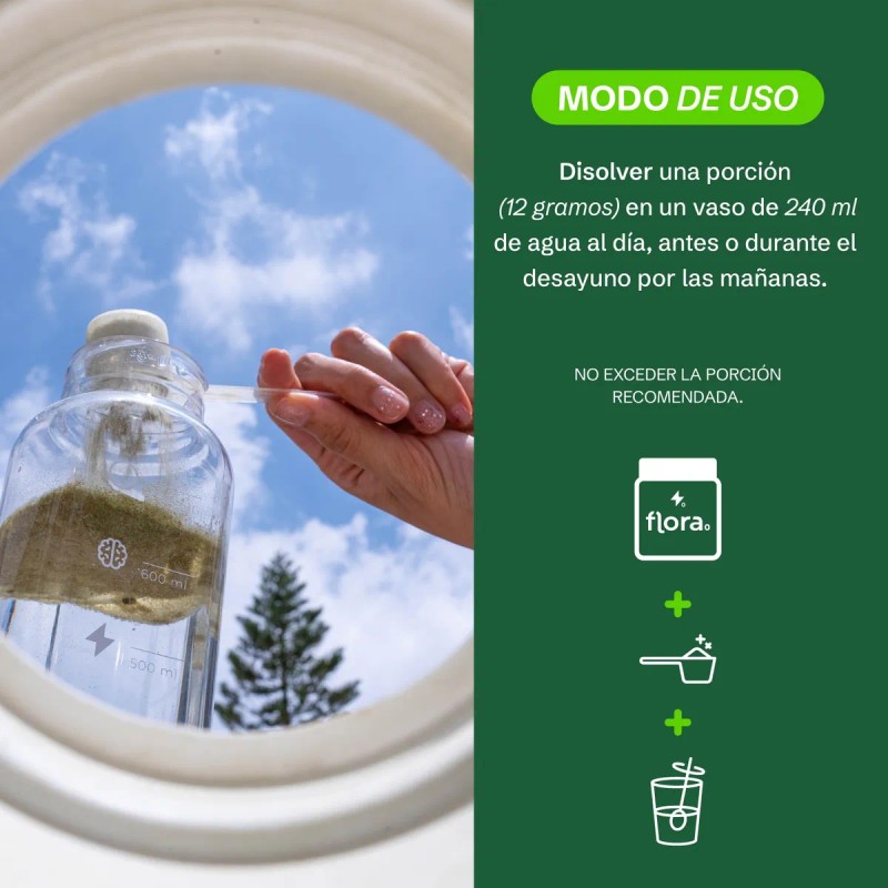 Los ingredientes en nuestra fórmula han sido cuidadosamente seleccionados bajo los más estrictos controles de calidad para asegurar concentración y biodisponibilidad de micronutrientes. Nuestro producto no contiene ningún tipo de relleno, aditivo, conservador, colorante y/o endulzante artificial. Al disolver Flora 0 en agua, los micronutrientes son mejor absorbidos por nuestro cuerpo en comparación con cápsulas o pastillas.