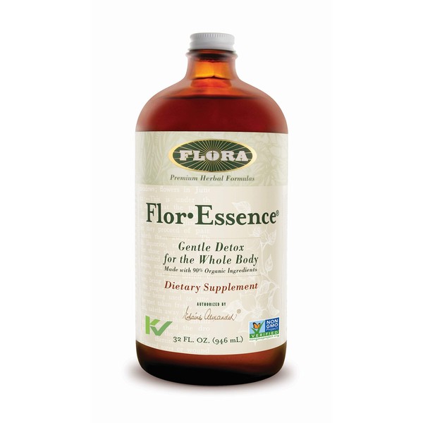 Flora Flora Flor Essence Liquid Tea Blend 32oz LARGE - Gentle Detox Cleanse with Burdock Root, Slippery Elm, Kelp, Thistle - Premium Organic Ingredients