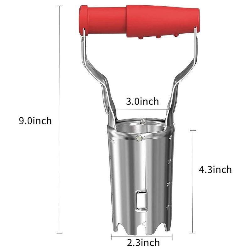 - đ»ăAutomatic Soil ReleaseăThe Automatic Bulb Transplanter innovative spring-loaded mechanism effortlessly ejects soil with a simple squeeze, reducing hand strain and speeding up your planting process.