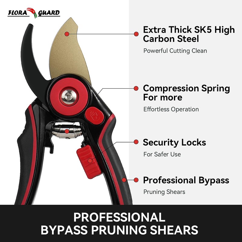 - 【Multi-Purpose Gardening Tool】- The FLORA GUARD 8.2 Inch Professional Pruning Shears are a versatile and essential gardening tool that can be used as garden shears, branch cutters, flower cutter, tree trimmers, hand pruners, and garden clippers handheld. They are suitable for a variety of tasks and are an ideal choice for garden enthusiasts and professional horticulturists