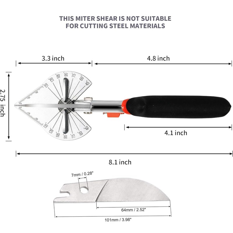 FLORA GUARD Miter Shears, Trimming Scissors for Angular Cutting of Molding, Adjustable at 45 to 135 Degrees, Hand Tool for Baseboard, PVC, DIY, Carpentry, and Crafts, with 2 Replacement Blades