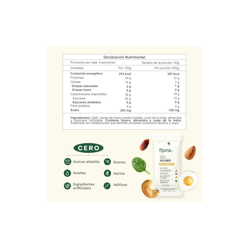 🌟 ⭐ FLORA01, Barras de proteína Des__Ayuno, Sabor natural, Libre de sellos, 12 gr de proteína por barra, Caja con 4 piezas ⭐ 🌟