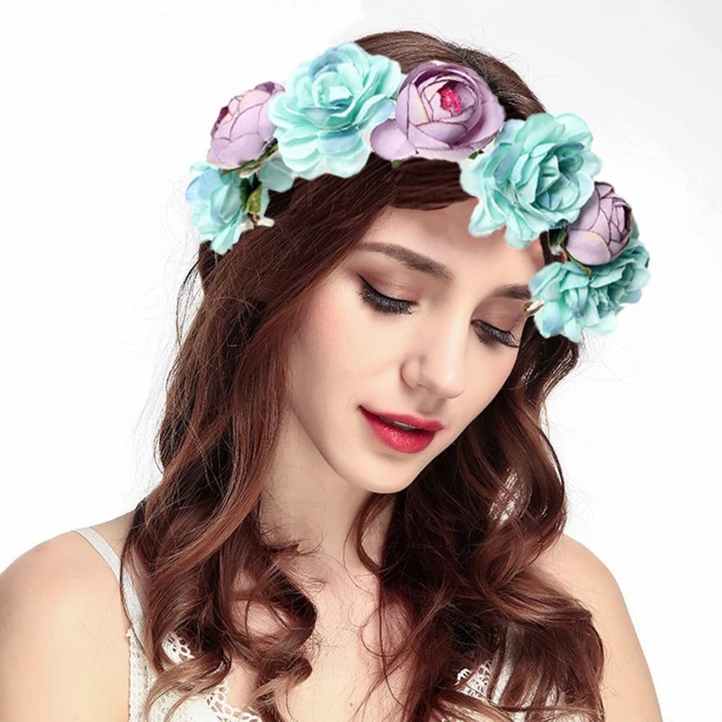 Floral Crown Headband Adjustable Flower Garland Headdress Hairband Floral Wreath Headband Bride Flower Crown Floral Headpiece Flower Headband Hair Wreath Garland Wedding with Ribbon for Women Girls