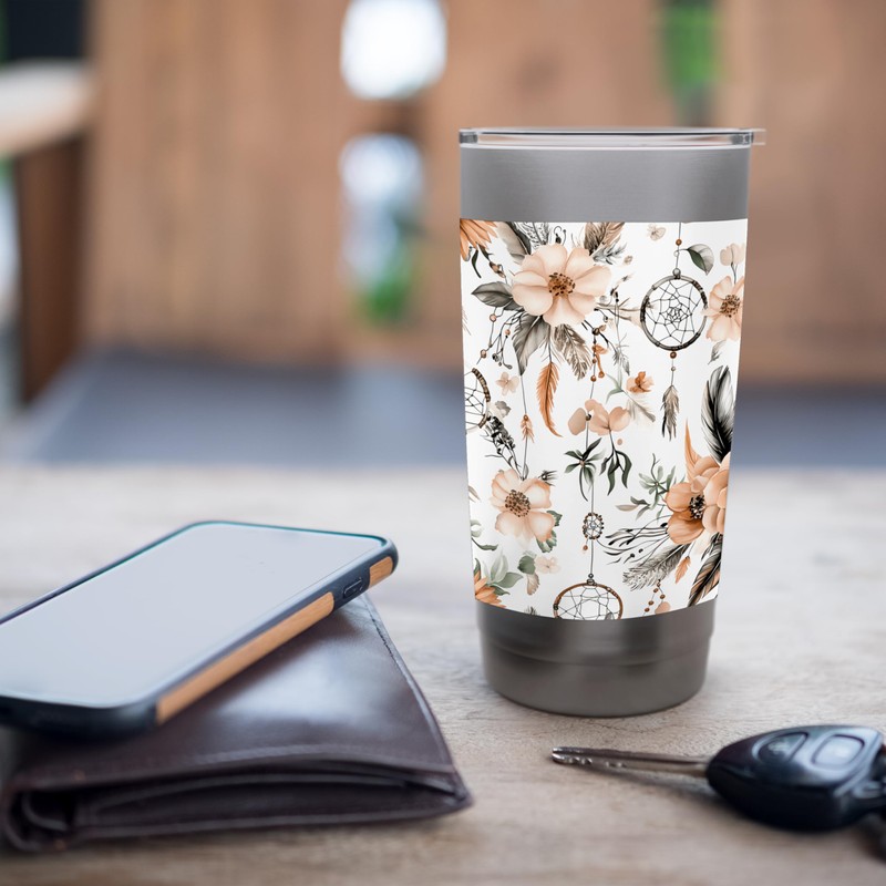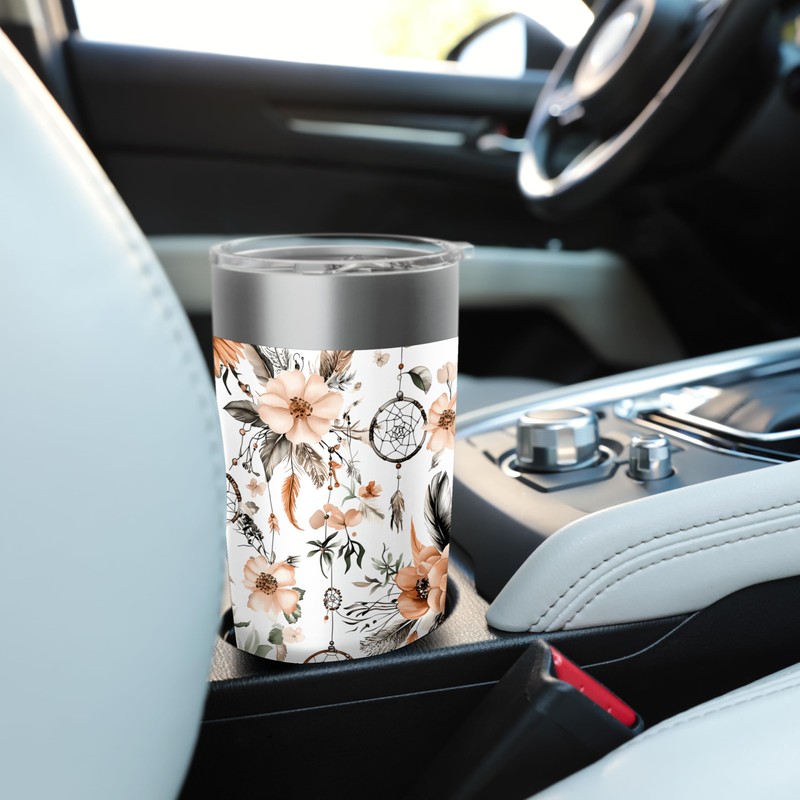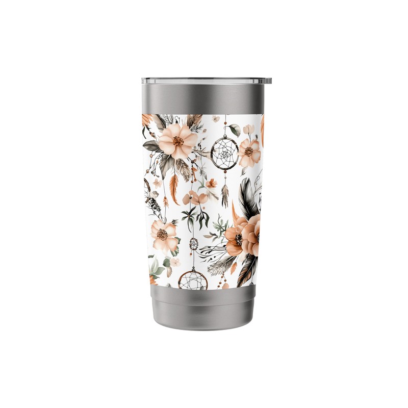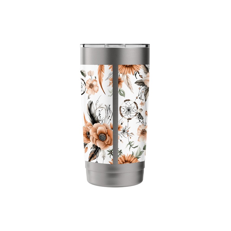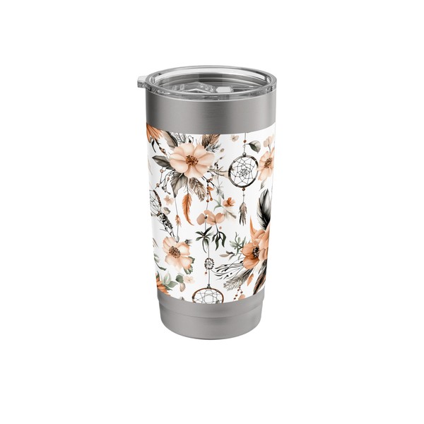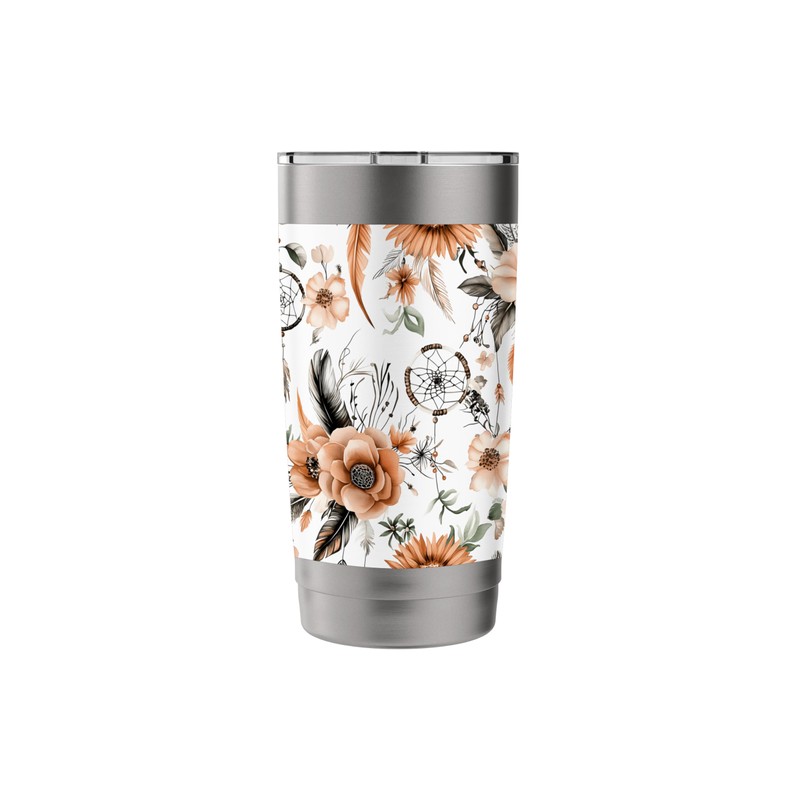 Floral Design, Boho Chic Image, Feather and Flower Artwork Stainless Steel Insulated Tumbler