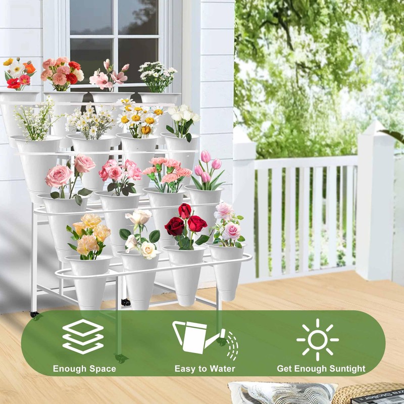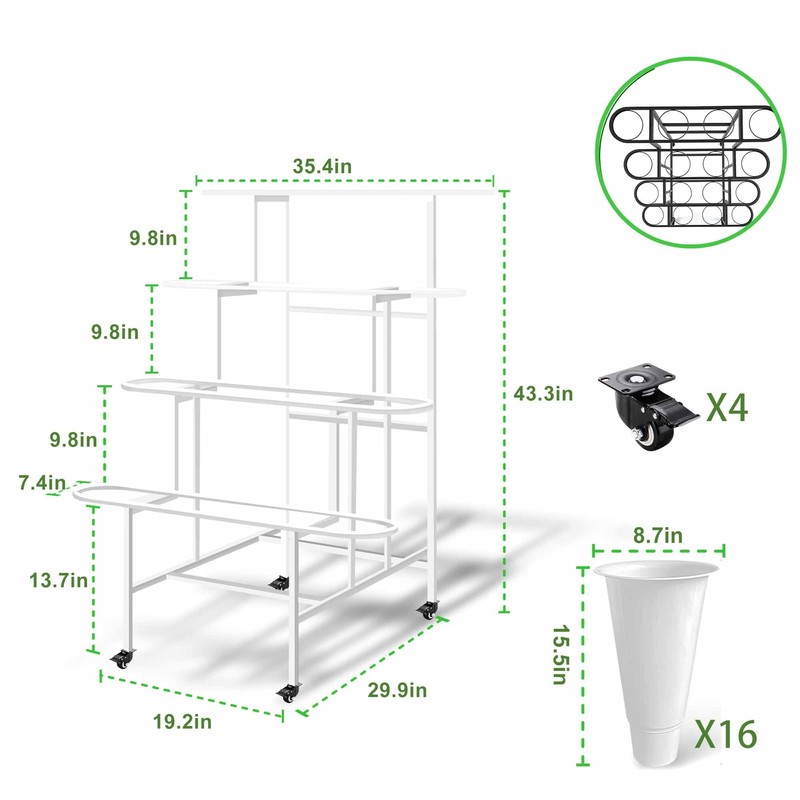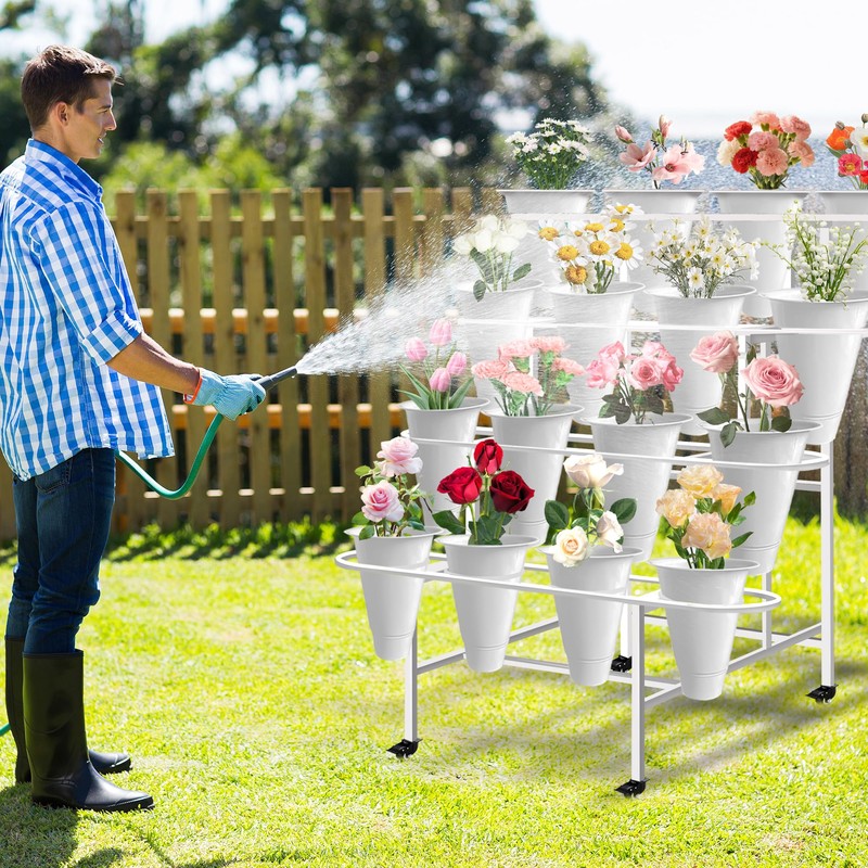 • Easy Assembly: This metal flower display stand can be easily assembled according to detailed instructions. The complete flower stand set includes an iron frame, 16 flower barrels, swivel wheels, screws, and detailed instructions. Convenient for you to easily and quickly assemble this flower display stand without the need for complex tools The plant flower display stand can be easily wiped and maintained with a damp cloth.