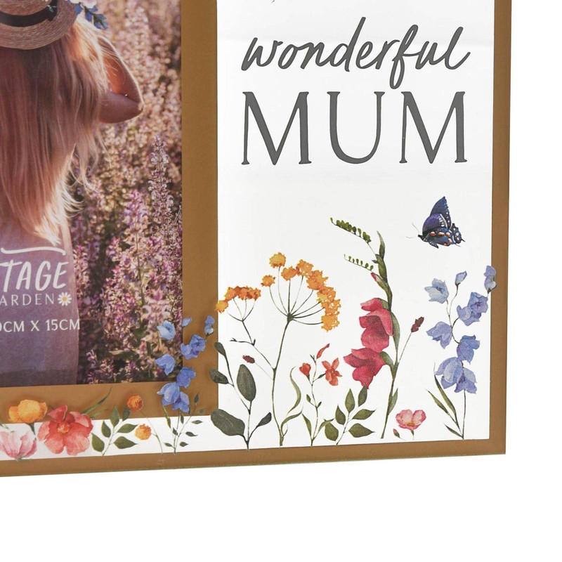 Floral Glass Photo Frame 4" x 6" with Gold Edge - Wonderful Mum