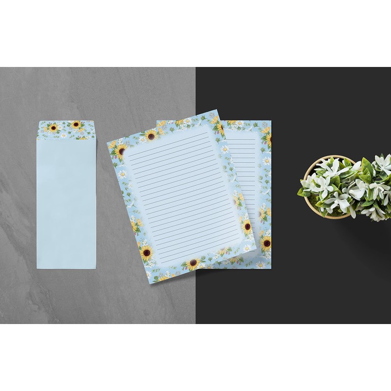 Floral Paper Stationery Set, 100 Piece Set (50 Lined Sheets + 50 Matching Envelopes), Letter Size 8.5 x 11 inch, 6 Designs, Double Sided/Lined Printing Paper, by Better Office Products
