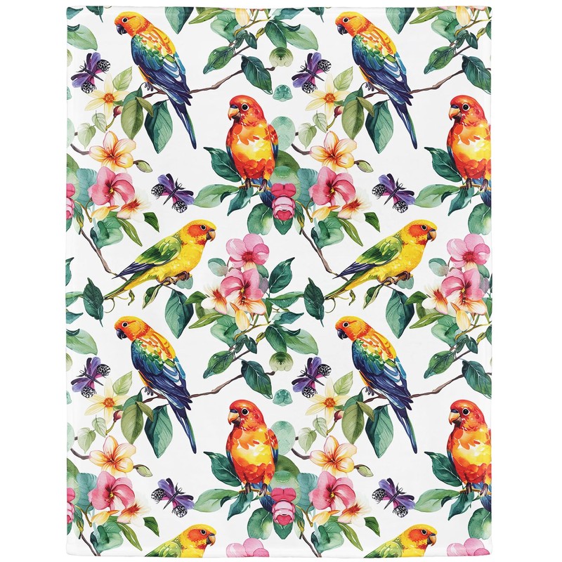 Floral Parrots Blanket, Flowers Leaves Butterfly Macaw Pattern, Super Soft Fleece Throw Blankets for Couch Sofa Bed, 50" x 60"